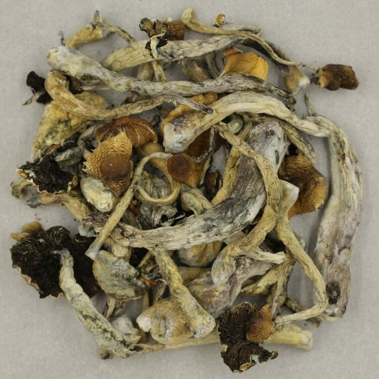 When dried, it might resemble Blue Meanies due to extensive bruising, a common occurrence with magic mushrooms. The more psilocybin, the bluer the bruises.